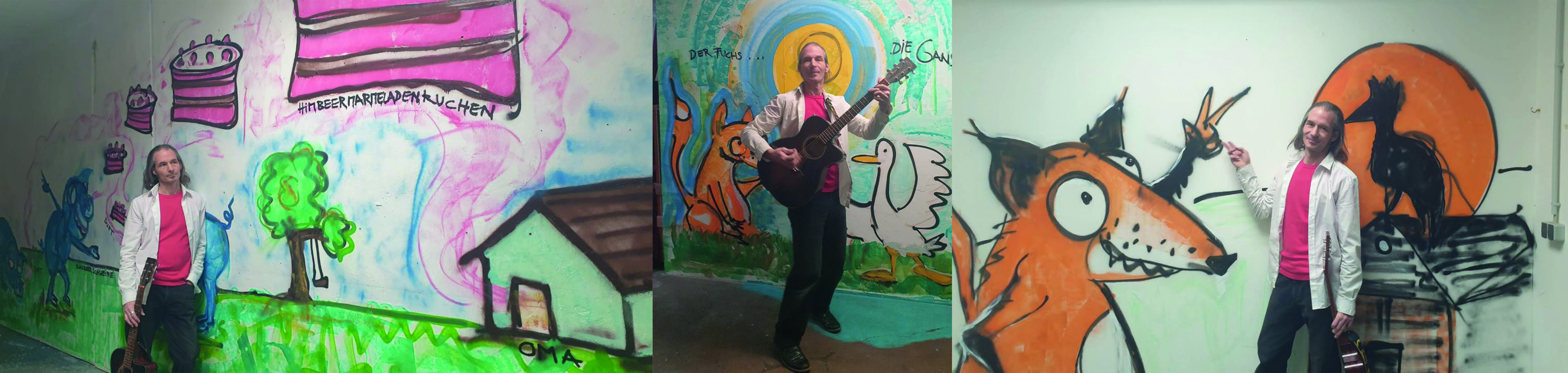 An seiner Seite stehen die kleinen Plüschtiere: der coole Bär als Beatboxer, Schweinchen mit einem Beinchen, das über die Klaviertasten wirbelt, und Pupsi-Hase, der mit seinem schwungvollen Soloauftritt am Saxophon für musikalische Höhepunkte sorgt. Die Lieder werden interaktiv von Bildern begleitet, die Lorenz Huber selbst illustriert und welche die Geschichten visuell zum Leben erwecken.